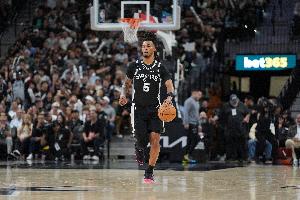上半场比赛,马刺后卫卡斯尔继续稳定且全面的发挥,虽然投篮状态一般,但冲筐效果不错,拼抢前场篮板也很积极。