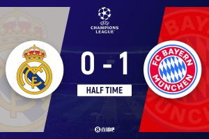 半场-皇马0-1拜仁 于帕梅卡诺姆巴佩造险迪亚斯破门
