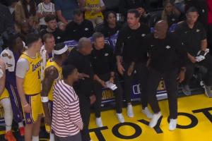 湖人ESPN队记Dave McMenamin报道,湖人主教练雷迪克第二节刚开始就叫暂停,将范德彪换下场,后者情绪激动与教练发生口角。里夫斯和助理教练介入阻隔双方。随后克内克特将范德彪换下。