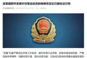 网络空间不是法外之地,公安机关网安部门将依法严厉打击以“饭圈”形式对运动员、教练员及管理人员进行网上侮辱、诋毁、诽谤等违法犯罪活动,切实促进体育事业健康可持续发展。