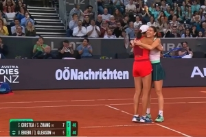 体育资讯4月11日讯 WTA500林茨站双打半决赛,头号种子张帅/科斯蒂亚直落两盘击败艾克里/格里森,成功晋级决赛。