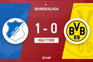 上半场补时6分钟,霍村1-0多特。